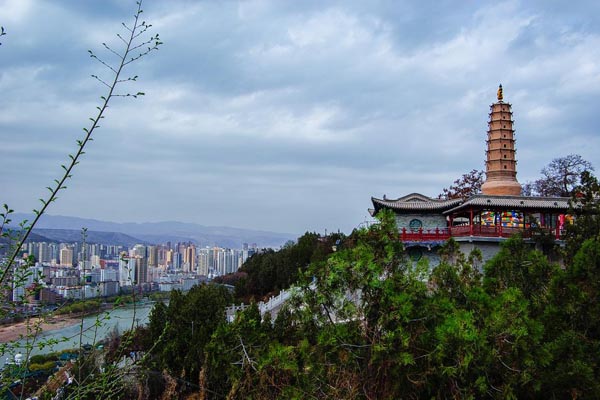 自古与黄河一道构成天然屏障,为军事战略要地。白塔原为纪念去蒙古谒见成吉思汗而在兰州病故的一西藏萨迦派喇嘛而建。现存白塔系明景泰年间(1450-1456年),镇守甘肃内监刘永成重建。清康熙54年(1715年),巡抚绰奇补旧增新,扩大寺址,起名慈恩寺。白塔七级八面,高约17米,下筑园基,上着绿顶,各面雕有佛像,檐角系有铁马铃。塔外通涂白浆,如白玉砌成。山高1,700米,1958年辟为公园,总建筑面积8000多平方米,分为三台建筑群,依山而筑,飞檐红柱,参差有致,各建筑以亭榭回廊相连,四通八达。山上原有象皮鼓、青铜钟、紫荆树,古称“镇山三宝”,现紫荆树已枯死。白塔山经过多年绿化,树高林密,曲径通幽。公园内独特的“黄河奇石馆”和裕固族接待帐房为别处少见,独具风格。山下为中山桥,使二者已连为一体,成为兰州旅游的必游之地。