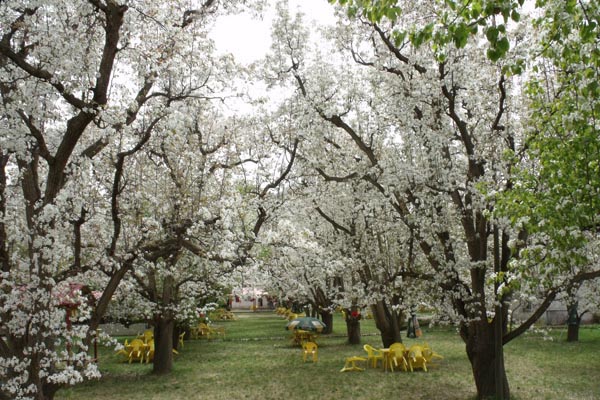 什川梨园的景色,以春秋两季最佳。春到什川,最先看到的是沿河的梨花迎风怒放,给古老的黄河镶上两道雪白的花边,林间雪涛滚滚,彩蝶纷飞,远山近野浸在一片花香中。登山远眺,只见梨花,不见古镇。金秋时节,霜叶火红,层林尽染,金黄的梨子挂满枝头,摇摇欲坠,各种载满梨子的车辆穿行其间,一片丰收喜庆的气氛。秋收冬藏后,梨园里便会响起锣鼓声,人们纷纷拿出祖传的家什,唱梨园鼓子,跳高架铁芯子,自娱自乐,陶醉其中。家家果园里是欢乐的人们,各种载满梨子的车辆,忙着把甜蜜送到城市乡村。