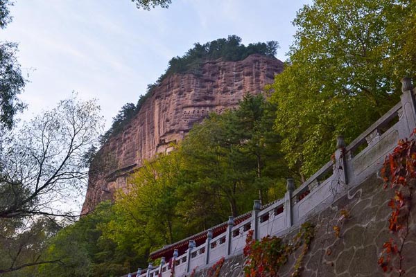 麦积山石窟位于秦岭西端北侧,距城区28公里。凿于十六国后秦时期,经北魏、西魏、北周、隋唐、五代、宋、元、明、清等10多个朝代的不断开凿、重修,遂成为仅次于敦煌莫高窟的我国第二大艺术宝窟,现存194个洞窟,泥塑、石雕7800多件,壁画1000多平方米,崖阁8座,以其精美的泥塑艺术闻名中外,被誉为“东方艺术雕塑馆”,是古丝绸之路上的一朵艺术奇葩,与敦煌莫高窟、山西云冈石窟、河南龙门石窟并称为中国四大石窟,而麦积山石窟则以独特的泥塑艺术独树一帜。