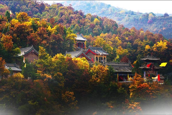 北端山崖隆起,圆顶兀石,形似凤头,纵观四野,恰似雏凤临空,遥望渭水,故名“凤凰头”。山下东西峡谷,飞流激响,幽境怡人,小溪三条汇合,故名“三岔口”。所有建筑物都依山势,逐台修建,大体可分为磨针殿、大殿院、玉皇顶,雷音崖四大部分,磨针殿内有隋代塑像二尊,均为明清作品。