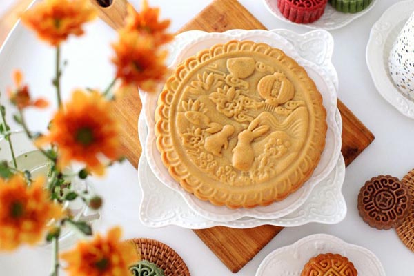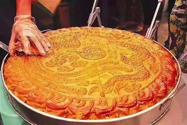 凉州大月饼,除了千层饼变形的色泽花纹十分漂亮外,最大的特点就是大。下雨天,小孩子常叫:“天爷天爷大大下,月饼蒸上车轮子大,小伙子吃上把房跳塌”。大的月饼,足有十来八公斤,像小汽车轮子似的。每逢中秋佳节,家家蒸大月饼以示全家团圆,并馈赠亲友,表达祈盼风调雨顺、五谷丰登的美好愿望。
