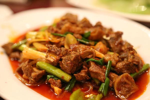 凉州畜牧天下驰名,在民间,羊羔肉的声誉则更高,食用方法亦多,既可清蒸,又可清炖,还可煮食和手抓,尤以红烧多见。其特点是色泽微红,肉质鲜嫩滑软。曾有"宁吃一顿红烧羊羔肉,不坐三请六聘九家席"之说。羊羔肉质地细嫩,肥而不腻,瘦而不柴,成为脍炙人口的美味食品,堪称塞上佳肴。
