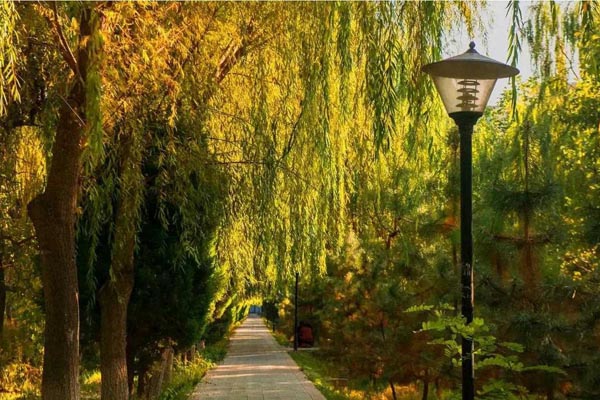 以“跳动的绿肺”为设计理念,用蜿蜒的曲线打破现状笔直的路网,林荫小道贯穿全园,围绕中心广场区域,形成不同的空间结构,让游人感受不同的游览观感。