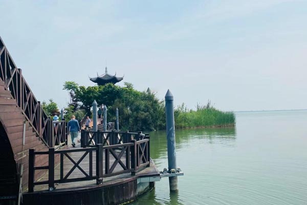 柳叶湖因湖面形似一片柳叶而得名,是五万年前形成的一个天然湖泊,属于西洞庭湖的一部分。坐落在湖南常德古城东北,东临洞庭湖、南临沅水、西依武陵山,北枕太阳山,是集山、水、田园、城四位一体的复合型旅游度假区,被誉为“中国城市第一湖”和“城市环抱的水上天堂”。