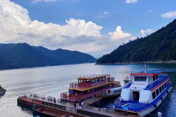 东江大坝是我国自行设计建造的第一座双曲薄壳型拱坝,坝高157米,坝型美观、结构新颖、气势雄伟,在当时同类型坝中世界排名第二,亚洲排名第一。东江水电站有4台发电机组,总装机容量50万千瓦,年发电量13.2亿度,同时还有防洪、航运、供水、养殖、旅游等多种功能。1986年8月2日,东江水电站正式关闸蓄水,双曲大坝锁住东江水,将其定格成碧波万顷的湘南明珠——东江湖。大坝两侧有三条滑雪式溢洪道,每当泻洪时,湖水从溢洪道飞泻而下,再腾空跃起,顷刻间化成雨雾,迷漫整个峡谷。
