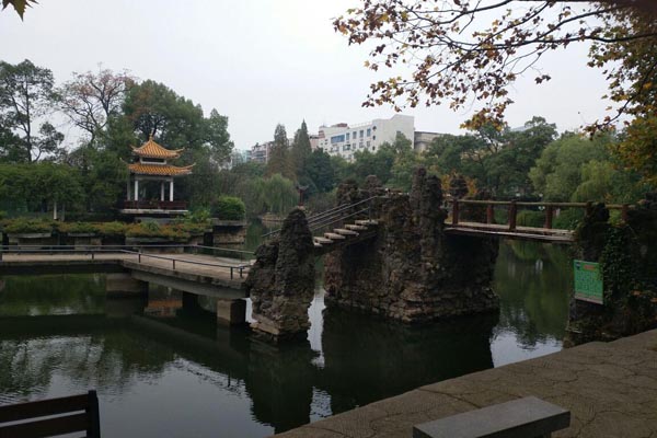 雨湖公园位于湘潭市中心,因地势低洼,积雨成湖而得名。历来就为湘潭风景名胜地,自古就有"垂柳碧孤塔,夕阳红半桥"的名句传诵至今;全湖分上、中、下三湖,占地约12公顷。湖中修筑了风格迥异的七星、八仙两座桥梁,桥拱宽大,游船畅通。上湖为风景精华区,水明如镜,垂柳依依,湖畔亭台楼阁错落,曲廊相连,姿色秀丽,现已开辟为公园。