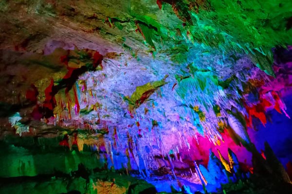 凤凰奇梁洞是凤凰古城首批正规景点之一,位于凤凰县北方,距古城4公里左右。该洞为典型的碳酸盐岩洞,以秀、奇、阔、幽等四大特色,又华夏第二洞之称。该洞洞身全长6000余米,主要分古战场、龙宫、天堂、十里画廊、阴阳河等五大景区:“古战场”为奇梁洞最前面,相传在南宋末年,官场腐败弄得民不聊生。不堪重压的苗族人在这里密谋造反,并和朝廷军队发生多次激战。后来由于叛徒告密,终因寡不敌众,起义军全体覆灭。该场景内至今还有被起义军用巨石砸马的落马河、供人吃饭的古碾房等遗址。