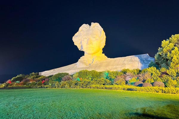 位于核心景区入口处南广场,诗词碑采用天然石制作,以毛泽东1961年10月16日手书水印木刻《沁园春长沙》复制稿制作而成,整个诗词字体洒脱,奔放,线条简单,形态自然。